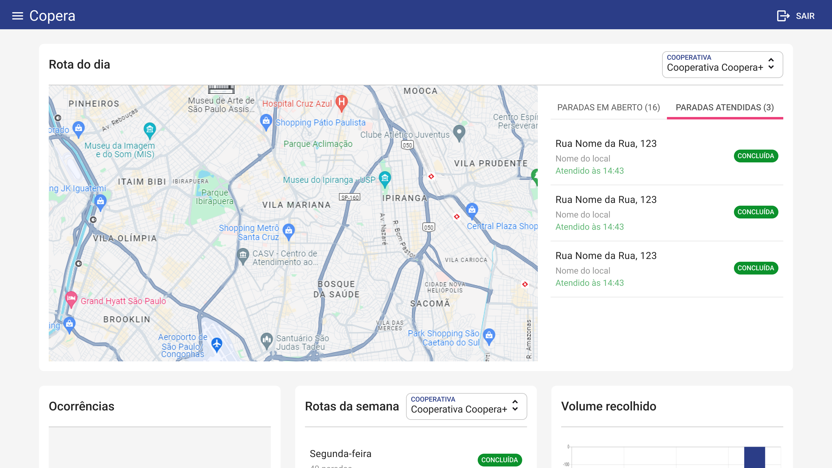 Desenvolvido para facilitar a vida de quem trabalha com resíduos recicláveis em cooperativas e prefeituras, a plataforma Copera oferece controle total sobre rotas, veículos, volumes coletados e ocorrências na coleta.